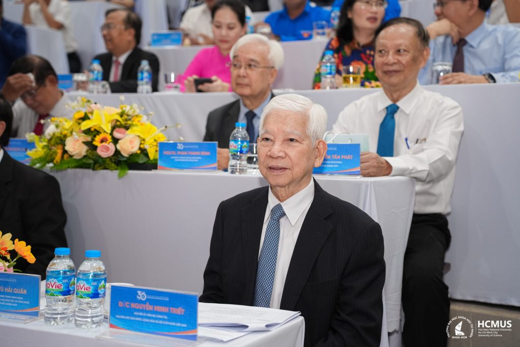 Tham dự buổi lễ có sự hiện diện của đồng chí Nguyễn Minh Triết – Nguyên Chủ tịch nước Cộng hoà Xã hội chủ nghĩa Việt Nam; đồng chí Lê Quốc Phong – Phó Bí thư thường trực Thành uỷ TP.HCM; PGS.TS Vũ Hải Quân – Thứ trưởng thường trực Bộ Khoa học và Công nghệ; GS.TS Nguyễn Thị Thanh Mai – Giám đốc ĐHQG-HCM; cùng đại diện lãnh đạo các bộ, ban, ngành, Đại học Quốc gia TP.HCM, các nhà giáo lão thành, đối tác, doanh nghiệp và các thế hệ cán bộ, giảng viên, người học của Nhà trường.