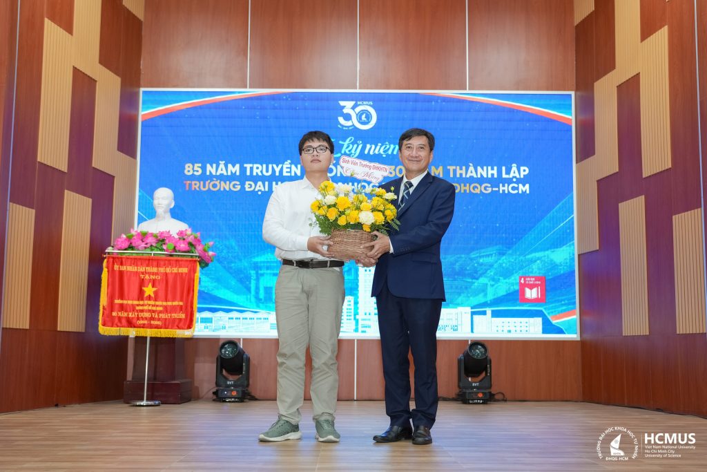 Nhân dịp này, Trường Đại học Khoa học tự nhiên vinh dự đón nhận Cờ truyền thống của UBND TP.HCM và Bằng khen của Đại học Quốc gia TP.HCM, ghi nhận những đóng góp trong sự nghiệp giáo dục, đào tạo và phát triển khoa học – công nghệ.